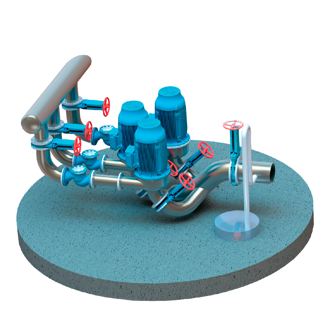 O Booster de Esgoto Modelo W da Kronox é um equipamento versátil, com 2 bombas em operação e 1 reserva (2+1R).